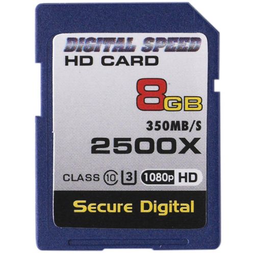 Capture Full HD, 3D, and 4K content with the Digital Speed 2500X 8GB Professional High Speed Mach III 350MB/s Error Free (SDHC) HD Memory Card Class 10 Memory Card. Each of the included SDXC memory card meets the UHS Speed Class 10 specification with maximum data speed of 350 MB/s. While this card is designed to meet the needs of those requiring enhanced data transfer rates, it remains backwards compatible with devices requiring UHS-II, Class 10 memory cards.